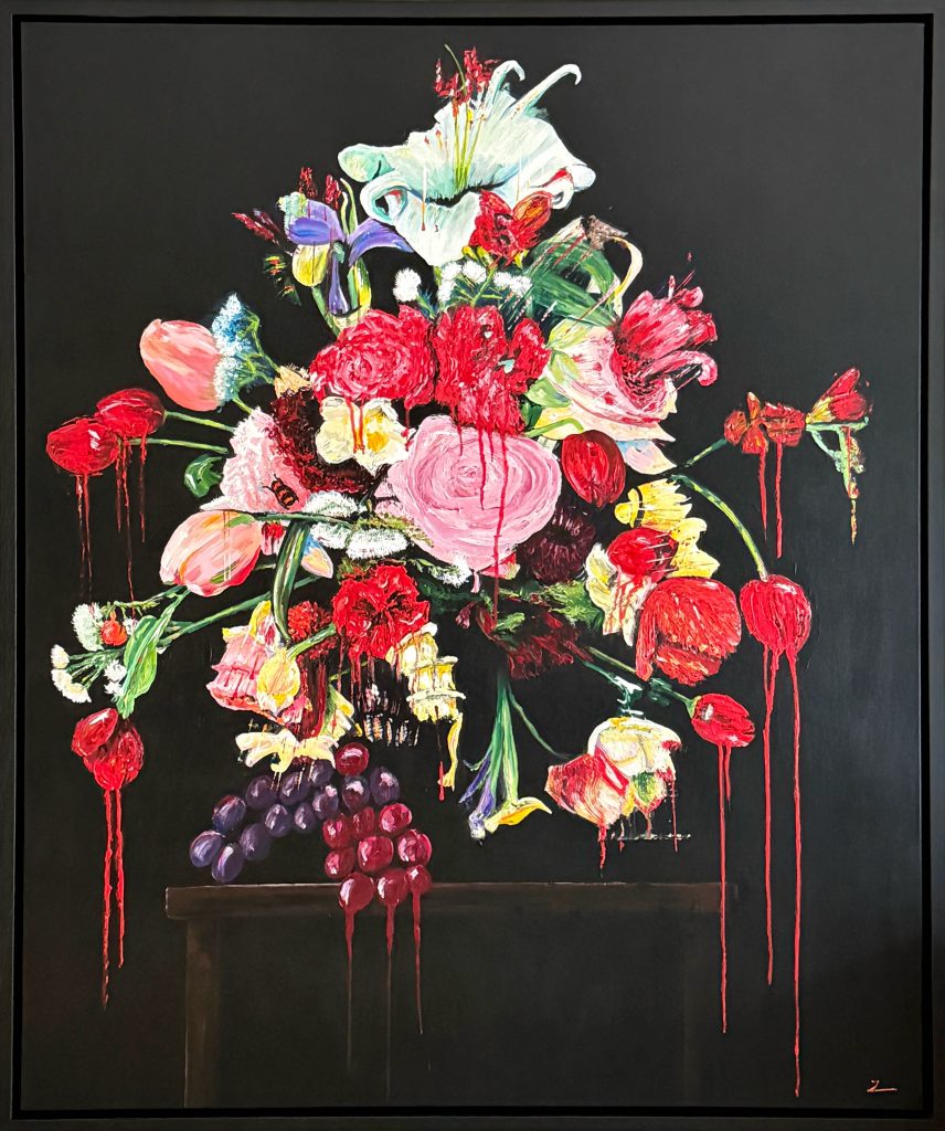 Stephen’s work will be showcased in a collection at the Cat Asylum Brewery, where we are excited to celebrate the launch of his latest series, Floral Decay. Two large 1.2m × 1m paintings from the series will be exhibited for the first time. Marking a departure in both style and subject matter, Stephen draws inspiration from 17th-century Dutch still-life flower paintings while introducing a contemporary twist.