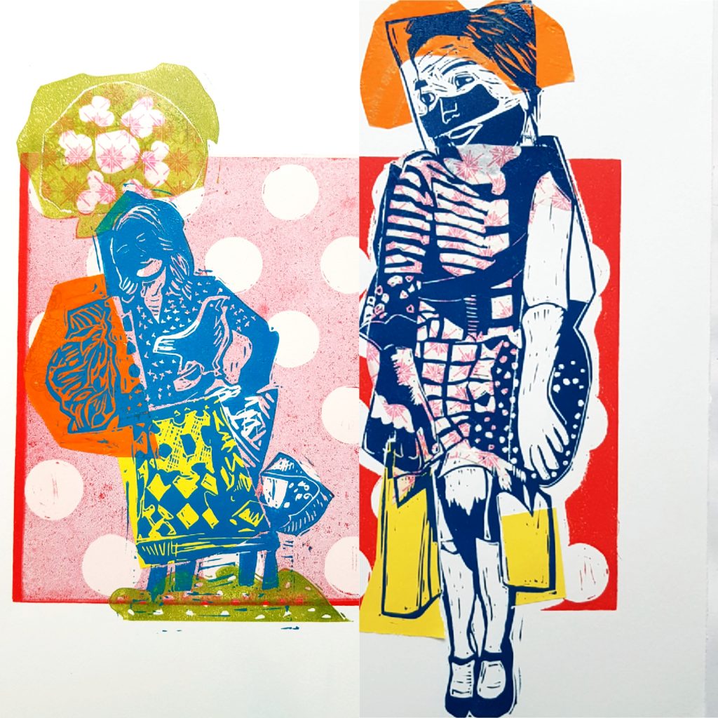 Visual artist working in hand-cut collage, limited edition linocut prints, mixed media drawings and small sculptural objects. Exploring colour, pattern, mark-making, the figure and architecture.