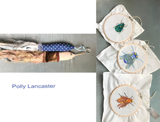 Polly uses natural and vintage fabrics for her hand crafted creations. Fashioning printed silks into scarves, linens into aprons and vintage fabrics into lavender wardrobe fish. There are also exquisite embroideries taken from her water colours.