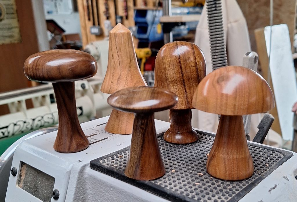 These are the mushrooms made on the third session of the course we ran in August 2023 (the fifth one that we’d done). The sharp eyed among you will notice there are five mushrooms instead of our normal 4 participants. That’s because one of the ladies on the course asked if her husband could come play too.